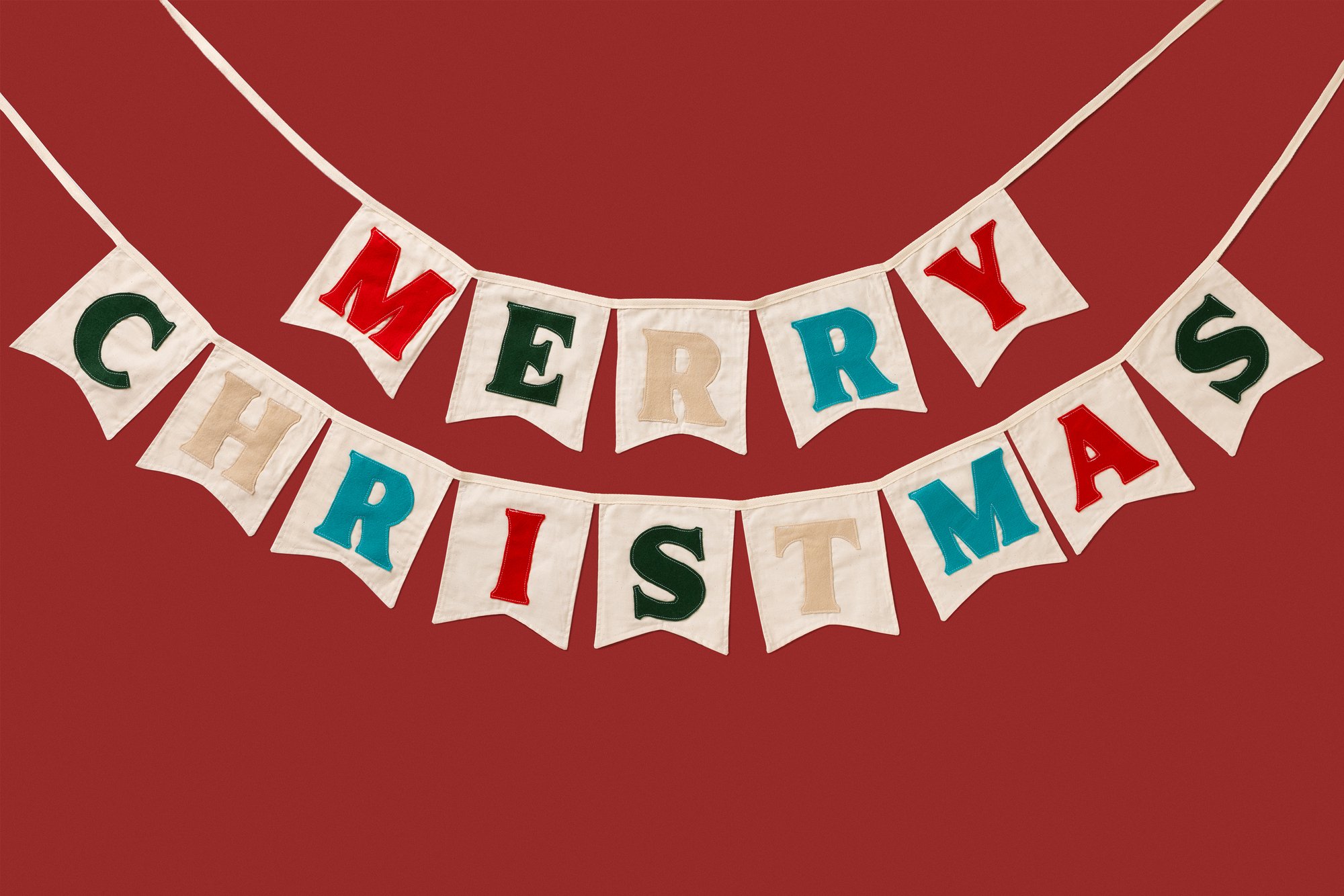 Merry Christmas body fabric is 100% natural cotton, and texted is felt polyester.